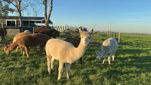 Onze alpaca's lopen vrij rond en komen nieuwsgierig bij je tafeltje. Geen trucjes, geen show — gewoon alpaca's die alpaca zijn. Je mag ze aaien, voeren en natuurlijk eindeloos fotograferen.